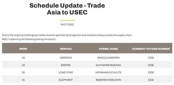 因為持續充滿試煉的市場形勢造成一整個供應鏈出現擁擠和進展拖延,MSC正在計劃下面美東航行遺漏:
